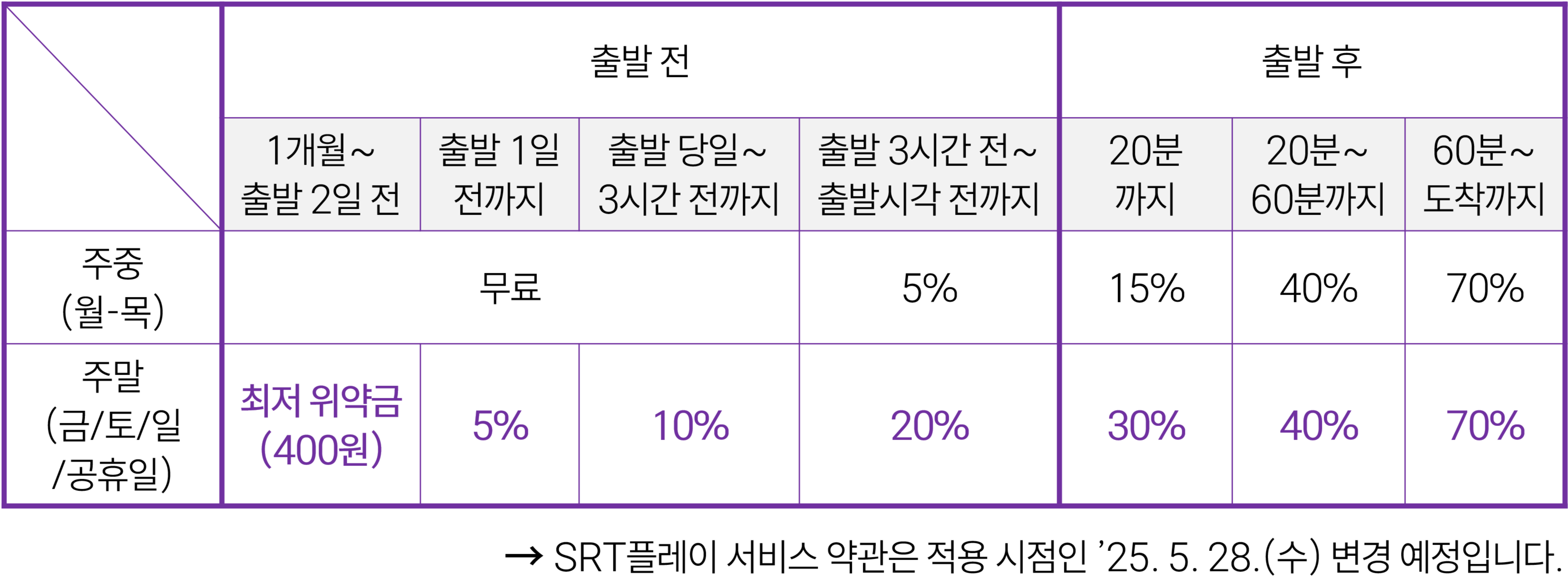 [안내] SRT 승차권 환불 위약금 변경 안내